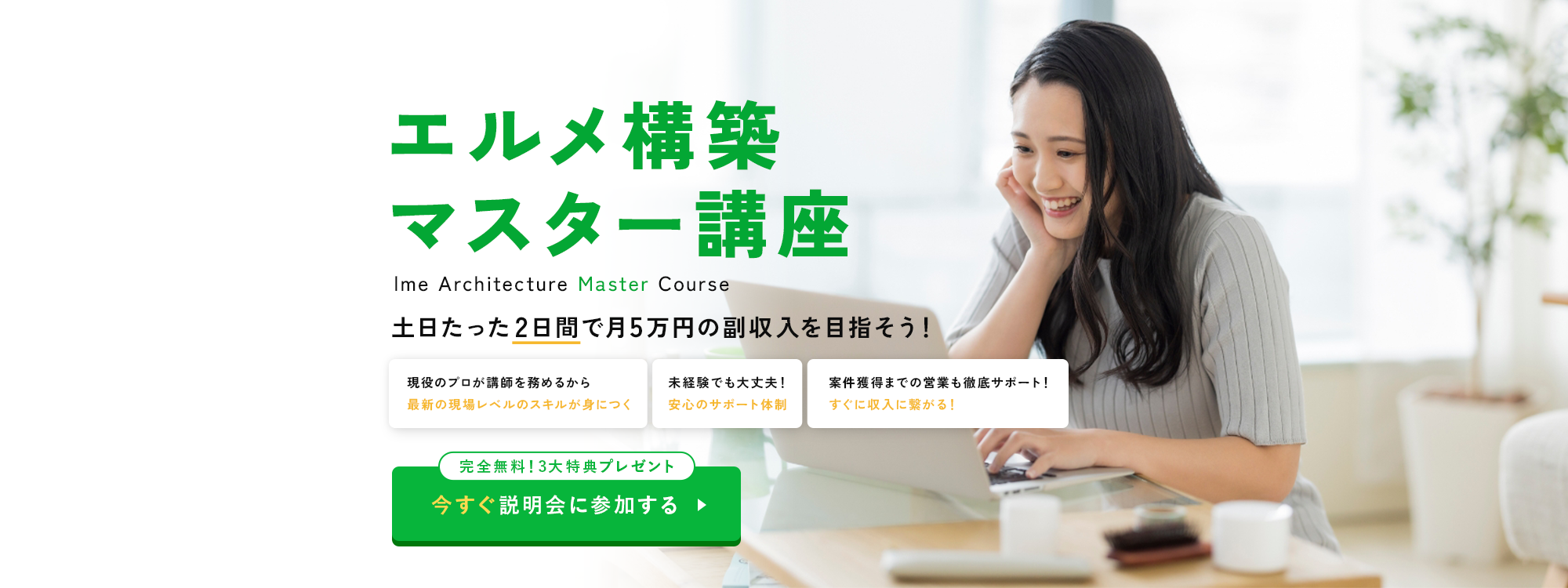1日目にエルメ構築に必要なスキルを身につけていただき、2日目には応用編と案件を獲得するための準備とノウハウもお伝えします。